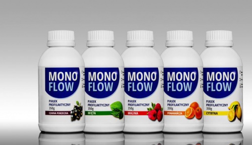 Monoflow Top - wysoce ścierny piasek do zabiegów profilaktycznych w obrębie naddziąsłowym. Zawiera wodorowęglan sodu oraz krzemionkę hydrofobową. Wielkość cząsteczek wynosi około 60-65 µm. Dokładnie usuwa silne przebarwienia i osady oraz duże złogi nazębne, również w trudno dostępnych miejscach. Nie podrażnia tkanek miękkich, nie uszkadza szkliwa i nie wywołuje nadwrażliwości pozabiegowej. Specjalna formuła zapobiega zbrylania się piasku. Sacharynian sodu niweluje słony, nieprzyjemny smak. Piasek Monoflow można stosować we wszystkich rodzajach piaskarek dostępnych obecnie na rynku. opakowanie: butelka 300g, smak pomarańczowy
