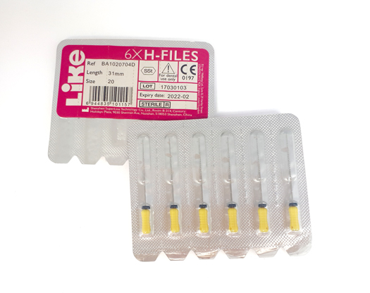 Pilniki typu H - wysoce wydajne narzędzia ze stali nierdzewnej do ręcznego opracowywania kanałów. Zaprojektowane zgodnie z kształtem opisanym przez dr Hedströma. Przeznaczone są do wszystkich technik wykonywanych ruchem obrotowo-piłującym (wymiatającym). Charakteryzują się doskonałą zdolnością cięcia tkanki oraz pasywnym, tępo zakończonym i bezpiecznym wierzchołkiem. Instrumenty są pakowane w sterylne blistry i są gotowe do użytku bezpośrednio po wyjęciu z opakowania. Każdy instrument zaopatrzono w silikonowy ogranicznik. Jednoznaczne i wyraźne oznakowanie typu i rozmiaru (zgodnie z ISO) instrumentu na uchwycie ułatwia jego identyfikację. opakowanie typu blister: 6 sterylnych pilników długości 31mm w rozmiarze 030/niebieskie