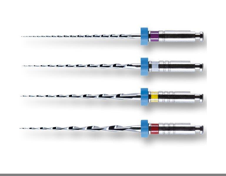 Mtwo® - pilniki niklowo-tytanowe do maszynowego opracowywania kanałów korzeniowych. Charakteryzują się wyjątkową elastycznością oraz ponadprzeciętną skutecznością cięcia. Posiadają esowaty przekrój poprzeczny i dwie głęboko wyprofilowane, pracujące krawędzie. Krawędzie tnące przebiegają prawie pionowo w długich spiralach, co pozwala lepiej kontrolować ruch instrumentu Minimalna promieniowa płaszczyzna przylegania do ściany kanału zapewnia bezpieczne i szybkie opracowywanie kanału bez niepotrzebnej utraty tkanki Odległość między krawędziami tnącymi wzrasta od końca pilnika ku jego uchwytowi, tworząc na powierzchniach bocznych krawędzi tnących wolną, głębszą przestrzeń. Umożliwia to odprowadzanie opiłków zębinowych i skutecznie zapobiega to zapychaniu i zaklinowaniu się instrumentu. Ponadto narzędzia jednocześnie modelują kształt kanału w kierunku wierzchołkowym oraz bocznym (przy zastosowaniu ruchu wymiatającego). System zawiera: 1./ 4 instrumenty Basic Sequence do skutecznego opracowania wszystkich rodzajów kanałów, w tym: - narzędzia 10/,04 (najcieńszy pilnik maszynowy NiTi dostępny na rynku) i 15/.05 przeznaczone do efektywnego i bezpiecznego przygotowania ścieżki schodzenia w kanale, - narzędzia 20/.06 oraz 25/.06 przeznaczone do wydajnego usuwania zębiny i precyzyjnego kształtowania kanału. Aktywne ostrza tnące i progresywne nachylenie umożliwiają skuteczne usuwanie zębiny i doskonałą zdolność cięcia bocznego Każdy pilnik opracowuje kanał na pełnej długości, aż do wierzchołka korzenia (Simultaneous shaping) tworząc ścieżkę schodzenia dla kolejnego narzędzia. Pozwala to na wprowadzenie igły endo (ISO 30) podczas irygacji do 4 mm przed wierzchołek już po drugim pilniku Mtwo i skuteczną eliminację bakterii 2./ 4 modele narzędzi do optymalnego kształtowania kanału pod wypełnienie wraz z dopasowaną do systemu gutta-perką (każdy przystosowany do określonej techniki wypełniania). Narzędzia w rozmiarach 30/ 05, 35/ 04 i 40/.04 w skuteczny i bezpieczny sposób przygotowują kanał bez zbędnego ubytku tkanki i obciążenia. Zmniejszone zwężenie instrumentów oznacza, że szczyt wierzchołkowy jest powiększony bez niepotrzebnego osłabiania zęba. Do łatwego i bezpiecznego opracowywania większych kanałów przeznaczono narzędzia 50/.04 oraz 40/.06 o zredukowanym przekroju i zwiększonej elastyczności. Dla instrumentów o większych rozmiarach ISO i większych zwężeniach, takich jak Mtwo 40 /.06 zredukowano przekrój dla zwiększenia ich stabilności. 3./ pilniki z tnącym wierzchołkiem do rewizji kanałów w celu skutecznego usuwania gutaperkowych wypełnień. opakowanie: 6 sterylnych pilników długości 21mm, rozmiar 10/.04, fioletowe (Basic Sequence), długość robocza 16mm