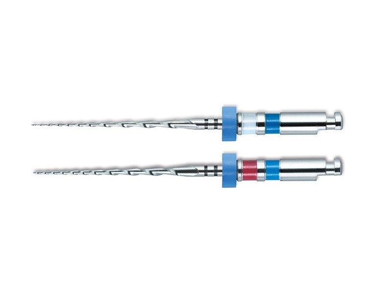 Mtwo® - pilniki niklowo-tytanowe do maszynowego opracowywania kanałów korzeniowych. Charakteryzują się wyjątkową elastycznością oraz ponadprzeciętną skutecznością cięcia. Posiadają esowaty przekrój poprzeczny i dwie głęboko wyprofilowane, pracujące krawędzie. Krawędzie tnące przebiegają prawie pionowo w długich spiralach, co pozwala lepiej kontrolować ruch instrumentu Minimalna promieniowa płaszczyzna przylegania do ściany kanału zapewnia bezpieczne i szybkie opracowywanie kanału bez niepotrzebnej utraty tkanki Odległość między krawędziami tnącymi wzrasta od końca pilnika ku jego uchwytowi, tworząc na powierzchniach bocznych krawędzi tnących wolną, głębszą przestrzeń. Umożliwia to odprowadzanie opiłków zębinowych i skutecznie zapobiega to zapychaniu i zaklinowaniu się instrumentu. Ponadto narzędzia jednocześnie modelują kształt kanału w kierunku wierzchołkowym oraz bocznym (przy zastosowaniu ruchu wymiatającego). System zawiera: 1./ 4 instrumenty Basic Sequence do skutecznego opracowania wszystkich rodzajów kanałów, w tym: - narzędzia 10/,04 (najcieńszy pilnik maszynowy NiTi dostępny na rynku) i 15/.05 przeznaczone do efektywnego i bezpiecznego przygotowania ścieżki schodzenia w kanale, - narzędzia 20/.06 oraz 25/.06 przeznaczone do wydajnego usuwania zębiny i precyzyjnego kształtowania kanału. Aktywne ostrza tnące i progresywne nachylenie umożliwiają skuteczne usuwanie zębiny i doskonałą zdolność cięcia bocznego Każdy pilnik opracowuje kanał na pełnej długości, aż do wierzchołka korzenia (Simultaneous shaping) tworząc ścieżkę schodzenia dla kolejnego narzędzia. Pozwala to na wprowadzenie igły endo (ISO 30) podczas irygacji do 4 mm przed wierzchołek już po drugim pilniku Mtwo i skuteczną eliminację bakterii 2./ 4 modele narzędzi do optymalnego kształtowania kanału pod wypełnienie wraz z dopasowaną do systemu gutta-perką (każdy przystosowany do określonej techniki wypełniania). Narzędzia w rozmiarach 30/ 05, 35/ 04 i 40/.04 w skuteczny i bezpieczny sposób przygotowują kanał bez zbędnego ubytku tkanki i obciążenia. Zmniejszone zwężenie instrumentów oznacza, że szczyt wierzchołkowy jest powiększony bez niepotrzebnego osłabiania zęba. Do łatwego i bezpiecznego opracowywania większych kanałów przeznaczono narzędzia 50/.04 oraz 40/.06 o zredukowanym przekroju i zwiększonej elastyczności. Dla instrumentów o większych rozmiarach ISO i większych zwężeniach, takich jak Mtwo 40 /.06 zredukowano przekrój dla zwiększenia ich stabilności. 3./ pilniki z tnącym wierzchołkiem do rewizji kanałów w celu skutecznego usuwania gutaperkowych wypełnień. opakowanie: 6 sterylnych pilników długości 21mm w rozmiarze 25/.05 (z czerwonym i niebieskim paskiem) narzędzia do ponownego leczenia kanałowego (re-endo)
