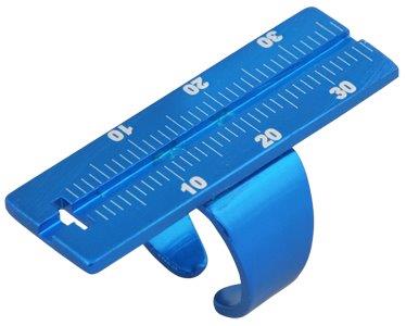 Linijka endodontyczna na palec. Wykonana z aluminium - można ja poddawac sterylizacji w autoklawie. Rozmiar pierścienia mocującego można łatwo dopasować wedle potrzeby. zakres podziałki: 0-36mm kolor niebieski