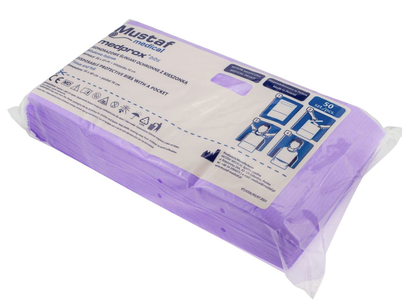 Śliniaki z kieszenią Mustaf Medical fioletowe 100szt./op MEDPROX BIBS