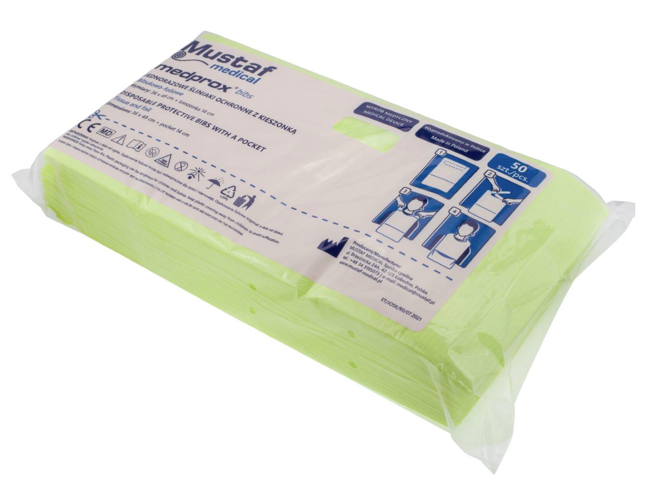 Śliniaki z kieszenią Mustaf Medical limonka 100szt./op MEDPROX BIBS