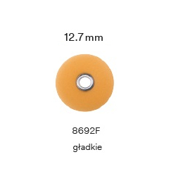 Sof-Lex™ - elastyczne krążki ścierne z maksymalną powierzchnią abrazyjną z nasypem z tlenku glinu. Umożliwiają opracowanie wstępne oraz polerowanie powierzchni wypełnień oraz uzupełnień protetycznych. Umożliwiają pełne opracowanie płaskich i wypukłych powierzchni wypełnień. Usuwają nadmiary, nadają kształt, polerują wstępnie oraz ostatecznie. Eliminują potrzebę zastosowania innych narzędzi. Mocowane na zatrzask- można je łatwo i szybko wymienić bez potrzeby dokręcania lub dopasowywania Dostępne w: - czterech gradacjach ścierności oznaczonych kolorami (coarse, medium, fine, extra fine) - dwóch grubościach (normalna i cienka) - dwóch średnicach (9,5mm lub 12,7mm) opakowanie: 50 krążków super cienkie gładkie (jasnopomarańczowe) 12.7 mm