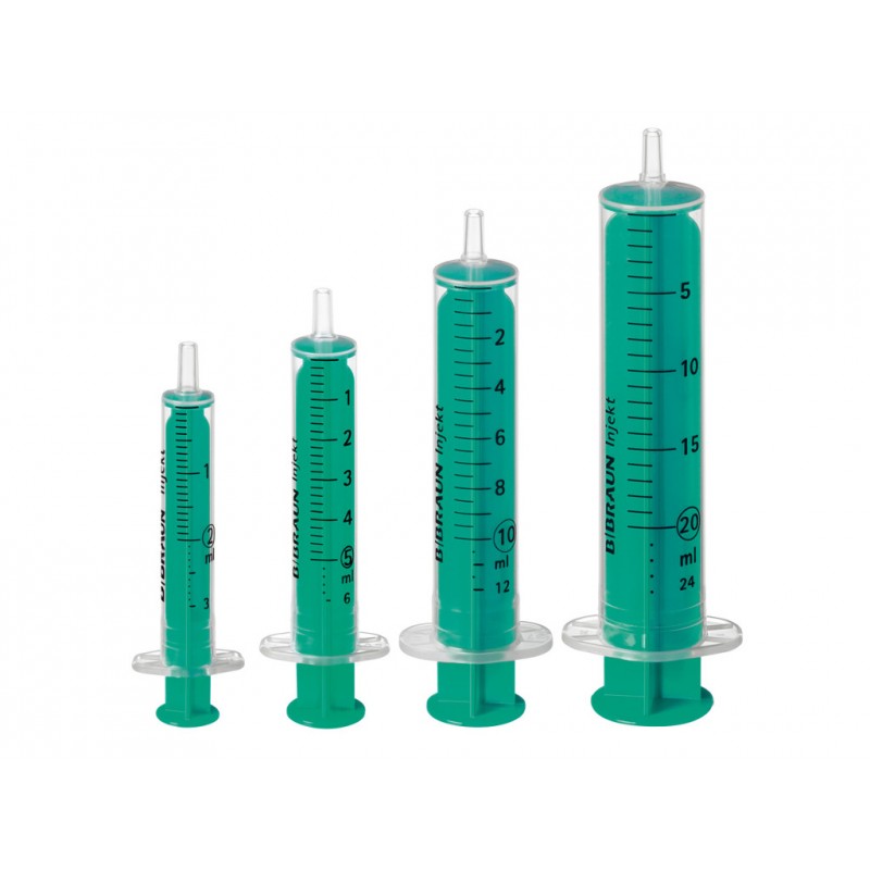 Strzykawka dwuczęściowa Injekt z końcówką typu Luer-lock. Wykonana z nietoksycznego i apirogennego polipropylenu i polietylenu (nie zawiera lateksu i silikonu). Przezroczysta komora umożliwia kontrolę zawartości cylindra. Czytelna, trwała i przedłużona podziałka (w czarnym, kontrastującym kolorze) ułatwia precyzyjne dawkowanie leku. Specjalna budowa tłoczka pozwala na pobranie minimalnej ilości plynu oraz maksymalne opróżnienie zawartości strzykawki. Kryza ograniczająca zabezpiecza przed cofaniem się lub przypadkowym wysunięciem tłoka. Zielony tłok doskonale kontrastuje z komorą strzykawki. opakowanie: 100 sterylnych strzykawek pojemności 5ml