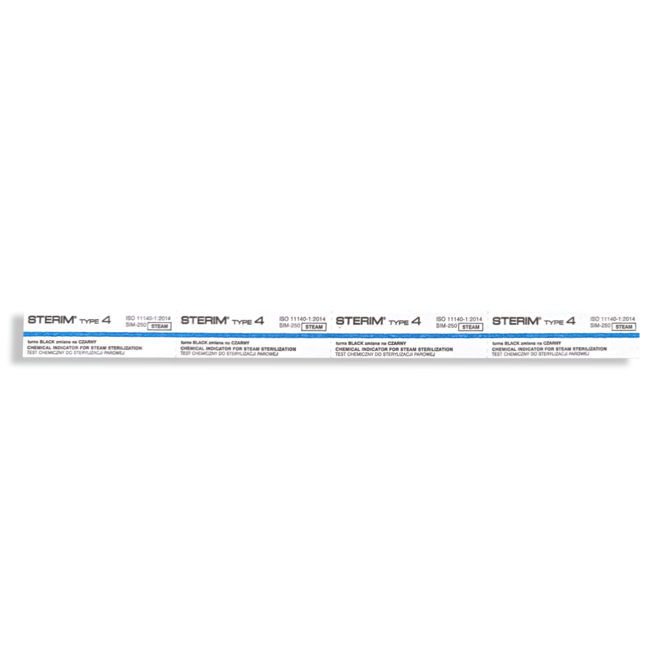 Paski typu 4 STERIM powinny zmienić kolor wskaźnika z niebieskiego na czarny po poprawnie wykonanym procesie sterylizacji. Wskaźnik powinien przebarwić się w całości