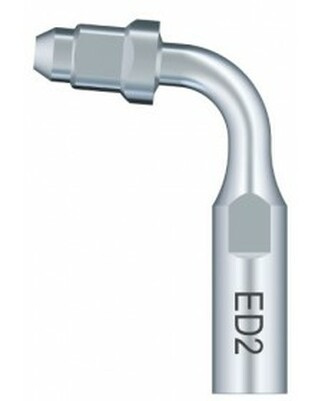 Końcówka ultradźwiękowa Woodpecker ED2 to uchwyt endodontyczny typu endo-chuck 95° przeznaczony do pracy ze skalerami ultradźwiękowymi w systemie NSK / Satelec / DTE. Oznaczenie „E” wskazuje na zastosowanie w endodoncji, natomiast litera „D” określa kompatybilność z urządzeniami w standardzie NSK/Satelec. Zgodnie z informacją producenta uchwyt umożliwia mocowanie pilników o średnicy O 0,7 mm lub O 0,8 mm i jest rekomendowany do oczyszczania oraz irygacji kanałów korzeniowych, szczególnie w zębach trzonowych. Zalety: Umożliwia aktywację pilników endodontycznych podczas oczyszczania kanałów korzeniowych. Wspiera skuteczną aktywację płynów irygacyjnych w systemie kanałowym. Geometria uchwytu 95° ułatwia dostęp do kanałów w zębach trzonowych. Stabilna transmisja drgań ultradźwiękowych na pilnik. Precyzyjna kontrola pracy podczas zabiegów endodontycznych. Możliwość wielokrotnej sterylizacji w autoklawie. Ekonomiczne rozwiązanie o wysokim standardzie wykonania. Cechy: Profil zastosowania: E – endodoncja. Konstrukcja typu endo-chuck z uchwytem 95°. Przystosowana do pilników o średnicy O 0,7 mm lub O 0,8 mm. System kompatybilności: D – NSK / Satelec / DTE. Wykonana ze stali nierdzewnej medycznej. Gładkie wykończenie powierzchni narzędzia. Informacje techniczne: Typ: ED2 (endo-chuck 95°). Zastosowanie: oczyszczanie i irygacja kanałów korzeniowych (cleaning and irrigation of the root canal), szczególnie w zębach trzonowych. Kompatybilność: skalery ultradźwiękowe w systemie NSK / Satelec / DTE. Obsługiwane pilniki: O 0,7 mm lub O 0,8 mm. Zalecenia eksploatacyjne: dokręcać wyłącznie dołączonym płaskim kluczem; nie dokręcać nadmiernie; nie stosować zamiennie pilników O 0,7 mm i O 0,8 mm w jednym uchwycie. Sterylizacja: autoklaw (zgodnie z zaleceniami producenta).