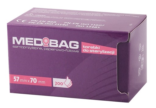 Samoprzylepne torebki papierowo-foliowe do sterylizacji w autoklawach parowych i przechowywania narzędzi medycznych. Wykonane są z wysokiej jakości - przezroczystej i gładkiej 6-warstwowej folii poliestrowo-polietylenowej (grubości 52 µm, barwiona na zielony kolor) - białego, niepylącego papieru medycznego (60 g/m2) zapewniającego barierę mikrobiologiczną dla drobnoustrojów. Folia jest nietoksyczna, odporna na rozerwanie oraz ułatwia szybką identyfikację zawartości pakietu. Mocny, trójścieżkowy zgrzew boczny redukuje pylenie podczas otwierania i zabezpiecza pakiet przed rozwarstwieniem. Dodatkowe zgrzewy narożne zapobiegają zawijaniu folii na rogach. Na papierze, poza powierzchnią przeznaczoną do bezpośredniego kontaktu z wyrobami sterylizowanymi*, umieszczono: - znaczniki kontroli sterylizacji (wewnętrzny i zewnętrzny) do określenia przebiegu procesu sterylizacji, - wskaźnik sterylizacji parowej "STEAM", - czytelny nadruk w języku polskim z ekologicznego tuszu zawierający wszelkie niezbędne informacje, wskazówki i symbole**. Dzięki temu nie zostaną uszkodzone i wykażą właściwy odczyn po sterylizacji. Torebki wyposażono w specjalne wycięcie na kciuk (na szczycie opakowania) ułatwiające bezpyłowe i szybkie otwarcie sterylnego pakietu. Pozwala to na podanie czystego i jałowego instrumentu. Zakładka z samoprzylepnym klejem ułatwia szybkie zamykanie pakietu bez konieczności stosowania zgrzewarek. Wstępne złożenie torebki ułatwia prawidłowe zamknięcie opakowania. Wyrób jest zgodny z wszelkimi wymogami, w tym z normą PN-EN 868-3 i 5 oraz PN-EN ISO 11607-1 i 2. Przeznaczony jest do użytku jednorazowego. Znak CE umieszczono na opakowaniu jednostkowym (tj. na pudełku) oraz na opakowaniu zbiorczym. opakowanie: 200 torebek papierowo-foliowych o wymiarach 57x70 mm *znaczniki oraz nadruki podlegają tym samym warunkom sterylizacji co zapakowany przyrząd ** Zgodnie z wymaganiami PN-EN 868-5 każde opakowanie opatrzono: - odpowiednim numerem serii i rozmiarem, - nazwą wytwórcy, znakiem handlowym, - kierunkiem otwierania, - symbolem wyrobu jednorazowego użycia oraz opisano kolory wskaźnika przed i po procesie sterylizacji - różowy STEAM brązowo-czarny i instrukcję użycia. Rękawy należy magazynować w chłodnym, suchym i czystym miejscu. Unikać nasłonecznienia i wysokich temperatur. Wysterylizowane pakiety po procesie sterylizacji mogą być przechowywane do 3 lat od daty produkcji opakowania, pod warunkiem, że opakowanie nie zostało uszkodzone i dotrzymane zostały zalecane warunki przechowywania.