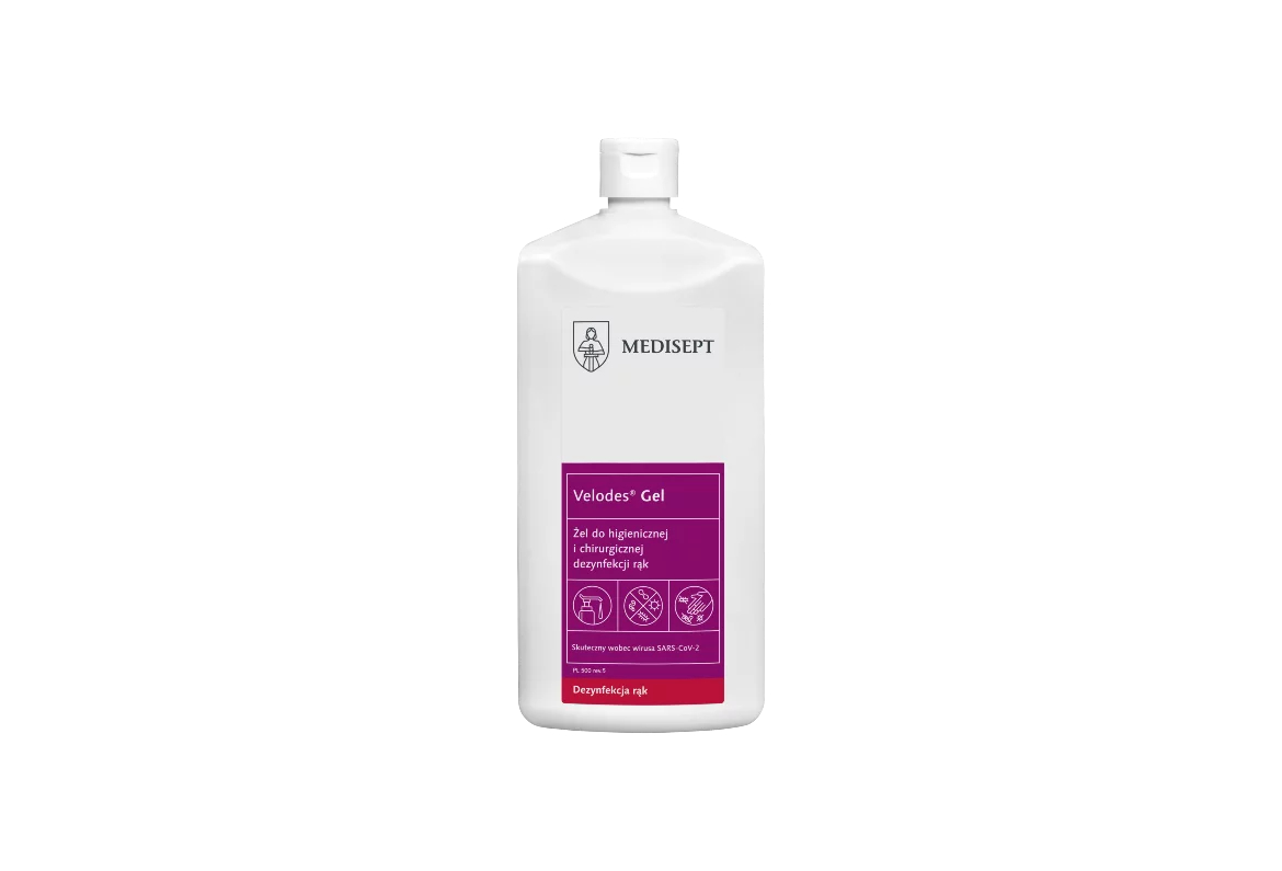 Velodes® Gel to zaawansowany preparat w formie żelu, przeznaczony do błyskawicznej dezynfekcji rąk w warunkach wymagających najwyższych standardów higienicznych. Dzięki optymalnej zawartości alkoholu, produkt wykazuje szerokie spektrum bójcze w krótkim czasie, jednocześnie pozostając łagodnym dla skóry dłoni nawet przy bardzo częstym stosowaniu. Cechy : Higieniczna dezynfekcja rąk: 2 x 1,5 ml w 30 sek. Chirurgiczna dezynfekcja rąk: 2 x 1,5 ml w 3 min Przedłużone działanie dezynfekcji chirurgicznej do 3 godz. Skuteczny wobec wirusów Rota i Noro Łagodne dla skóry pH Przebadany dermatologicznie Gwarancja skuteczności potwierdzona badaniami Nawilża i pielęgnuje dłonie dzięki zawartości gliceryny Wygodny w użyciu Szybkie działanie Zapobiega uczuciu lepkości dłoni