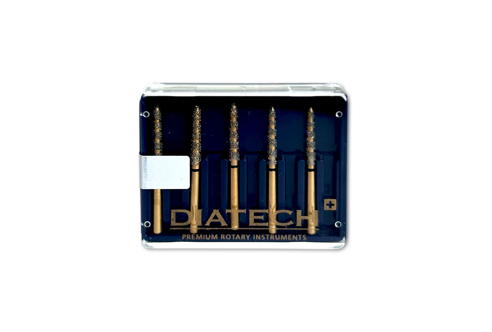 Wysokiej jakości narzędzie stomatologiczne z nasypem diamentowym, przeznaczone do precyzyjnego opracowywania twardych tkanek zęba oraz materiałów wypełnieniowych. Model 879K charakteryzuje się specyficznym kształtem, który ułatwia dostęp do trudno dostępnych miejsc w jamie ustnej. Wiertła Diatech są pokrywane wieloma warstwami diamentu, co przedłuża ich żywotność i zwiększa efektywność cięcia.