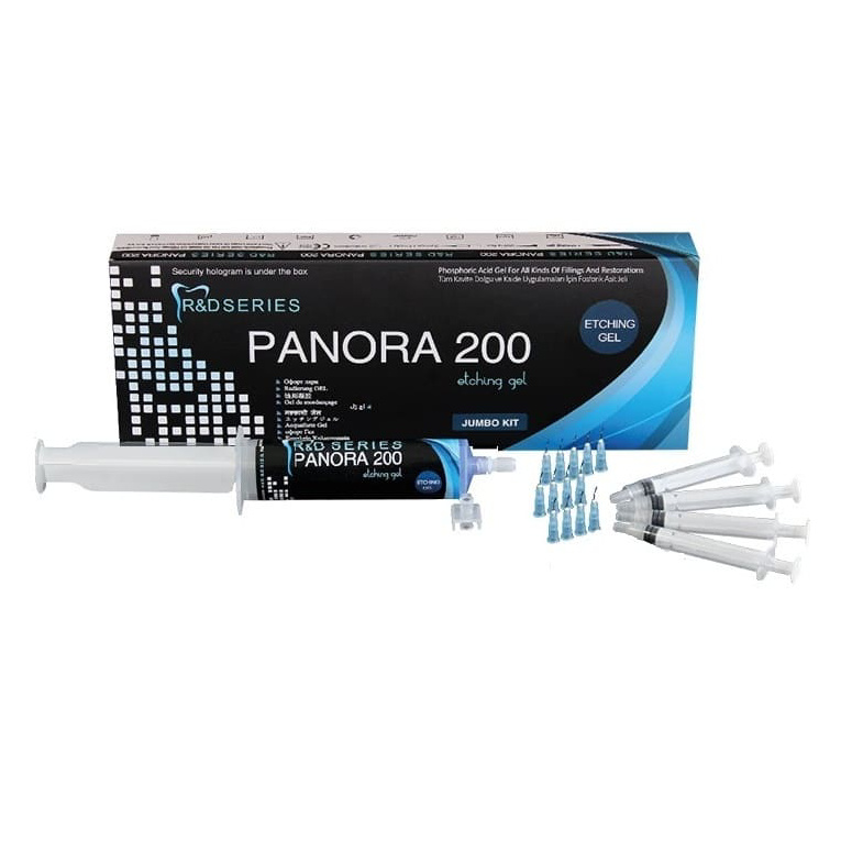 PANORA 200 jest nakładana techniką wytrawiania szkliwa lub całkowitego wytrawiania. Wskazania: • Uzupełnienia kompozytowe • Adhezyjne cementowanie wkładów (kompozytowych, pełnoceramicznych), koron, mostów, licówek, mostów adhezyjnych i wkładów do kanałów korzeniowych • Szynowanie • Klejenie zaczepów ortodontycznych (np. zamków) • Uszczelnianie szczelin Zawartość opakowania: - wytrawiacz 50 ml - puste strzykawki: 5 sztuk - końcówki do aplikacji: 50 sztuk