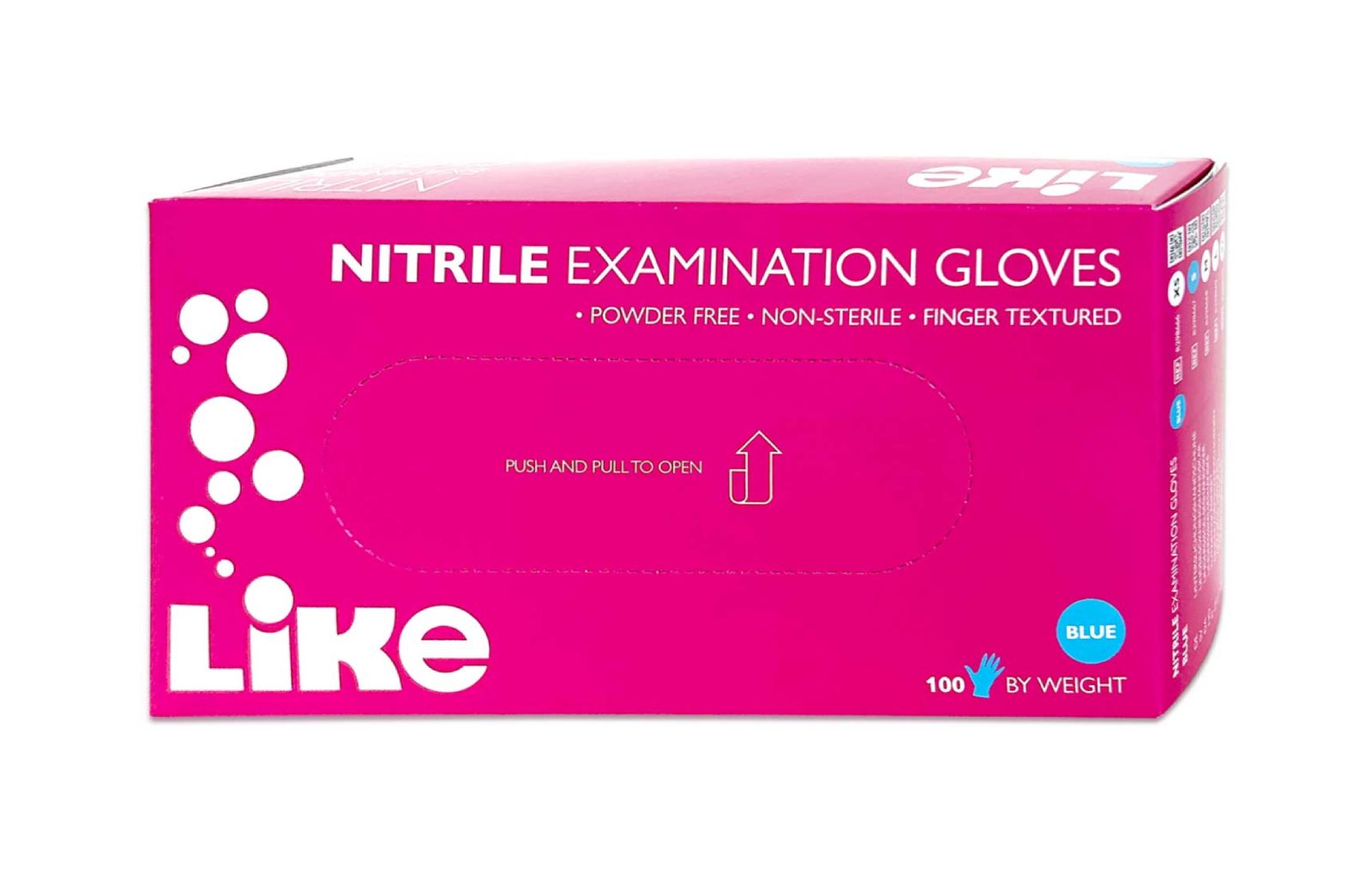 Rękawiczki M nitryl LIKE Blue 100szt./op. niebieskie, bezpudrowe, chropowate końcówki palców